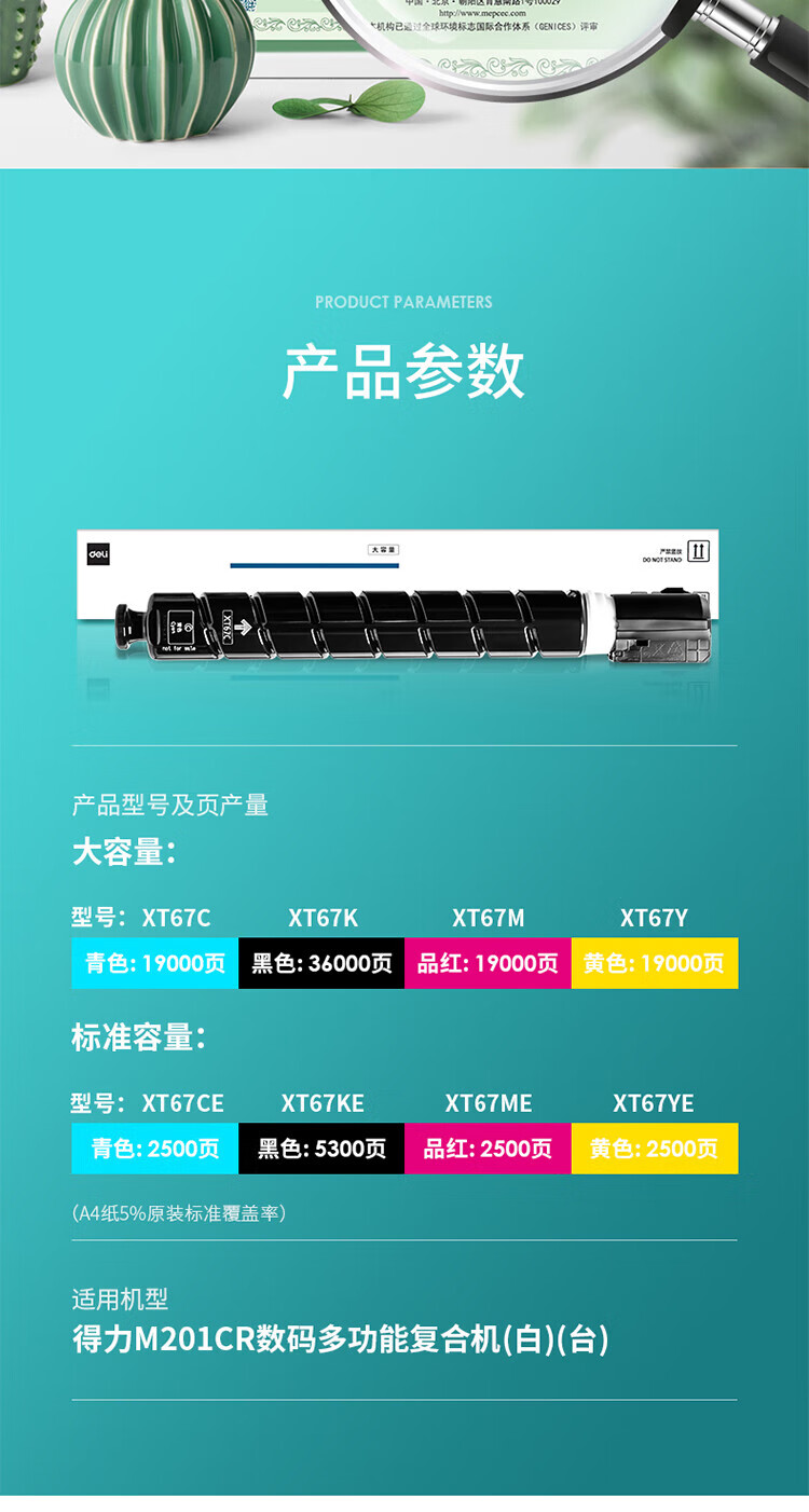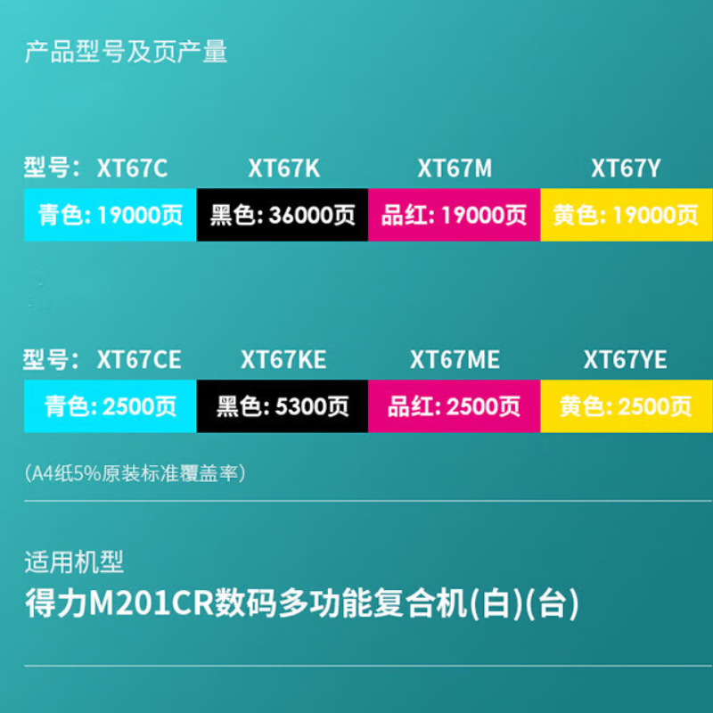 得力/deli XT67Ce 粉盒 原装墨粉盒 XT67Ce 标准容量青色 适用于 M201CR 数码多功能复合机/打印机