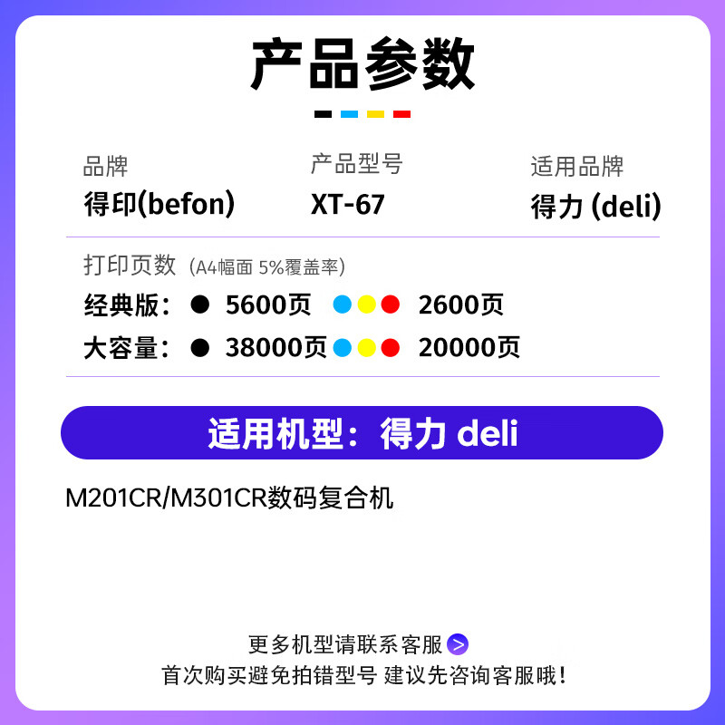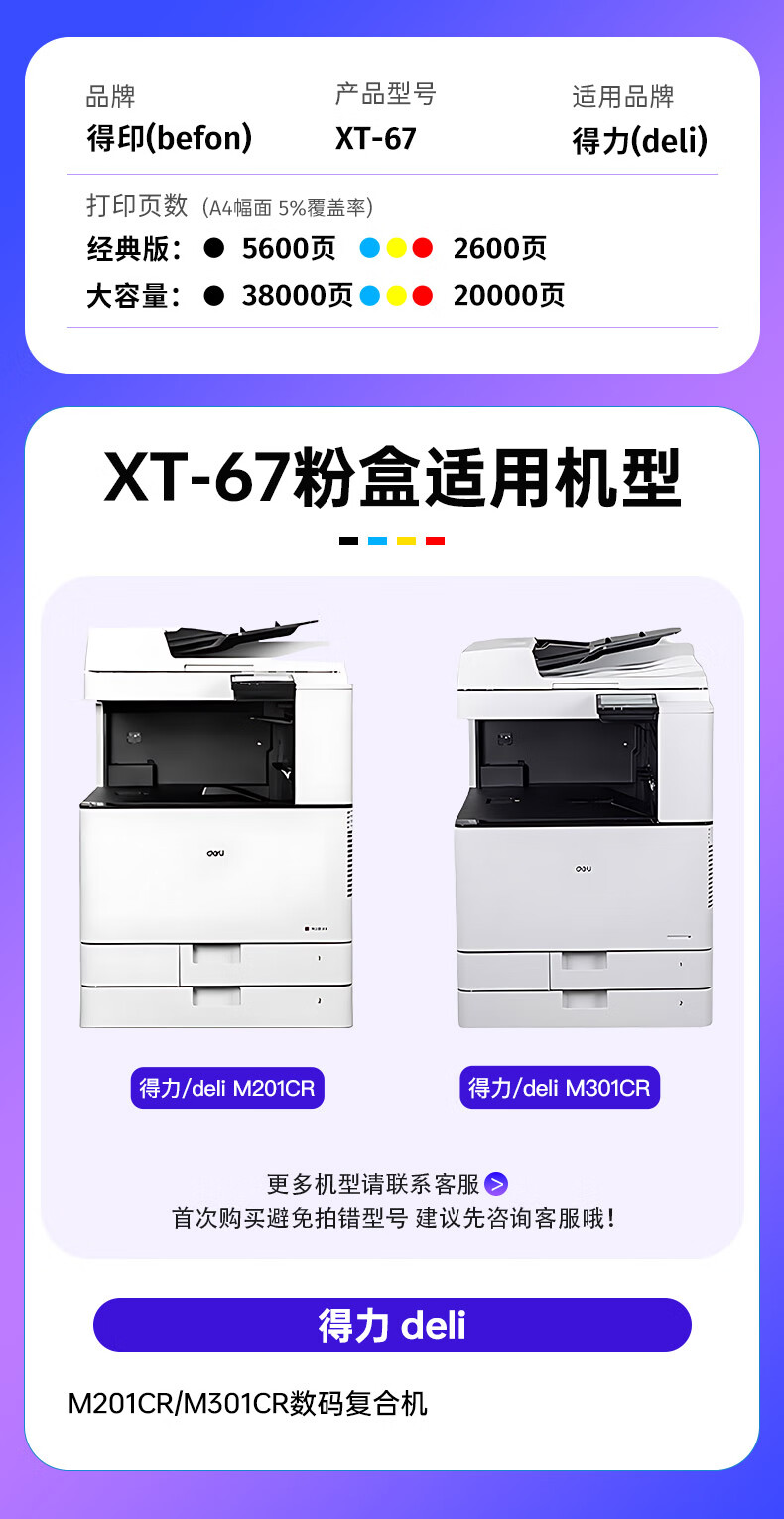 得印/befon XT67K 粉盒 得力M201CR粉盒 红色大容量 适用得力M201CR M301CR