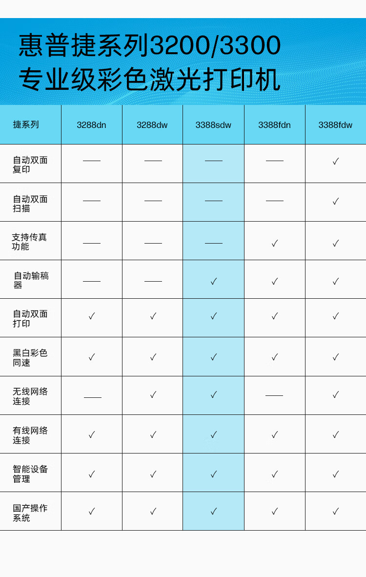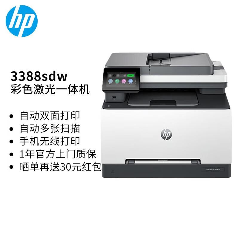 惠普/HP 3388sdw A4 彩色打印机 三合一+自动双面打印+输稿器