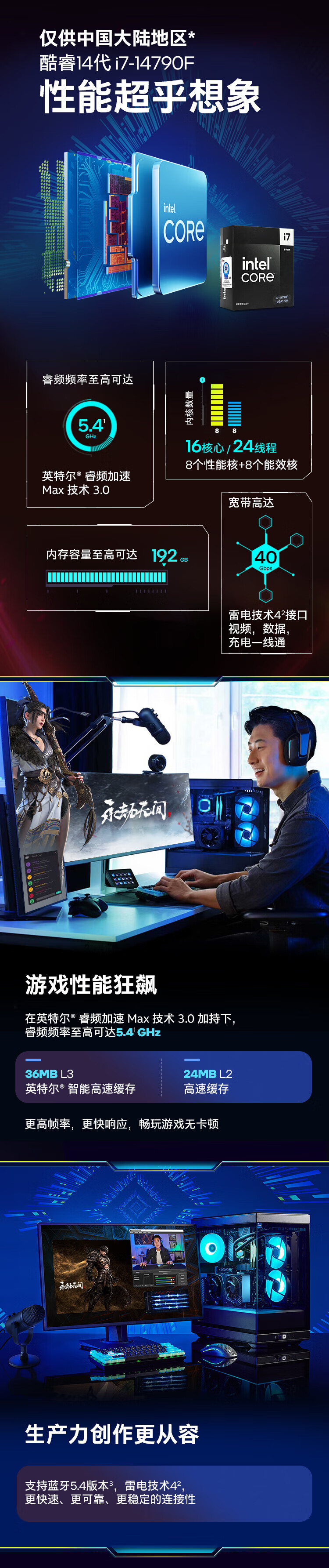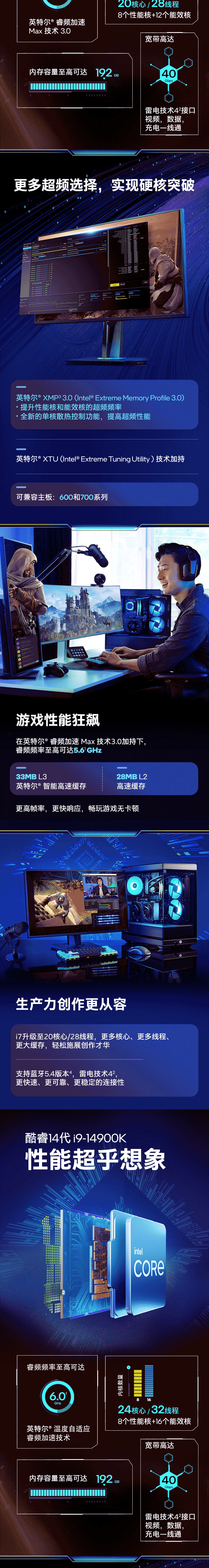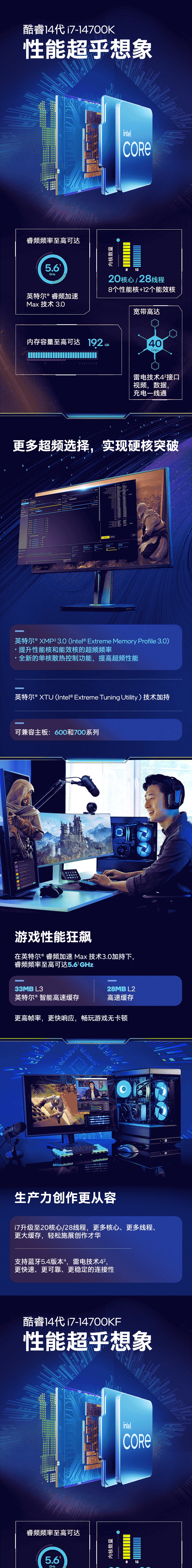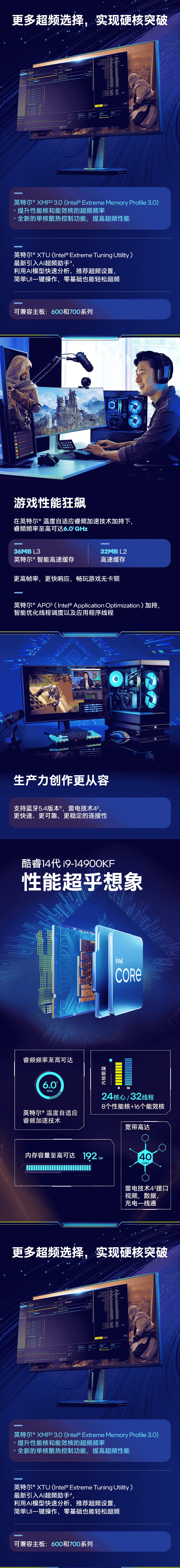 英特尔/INTEL i9-14900KF 网络连接设备 CPU 14代酷睿CPU处理器 台式机处理器 盒装CPU i9-14900KF 盒装【五年质保】