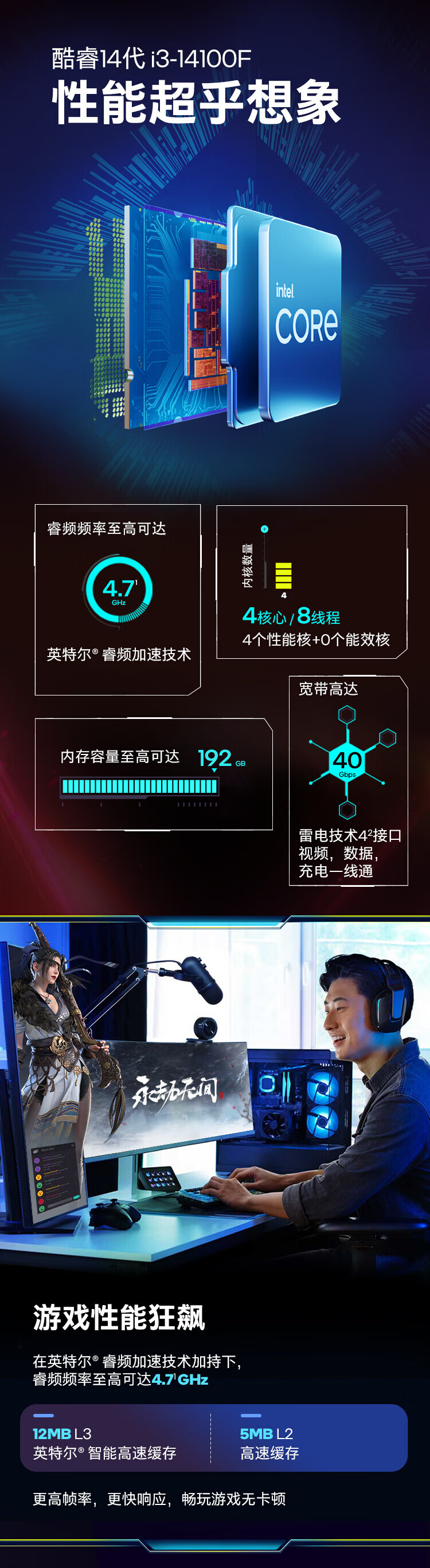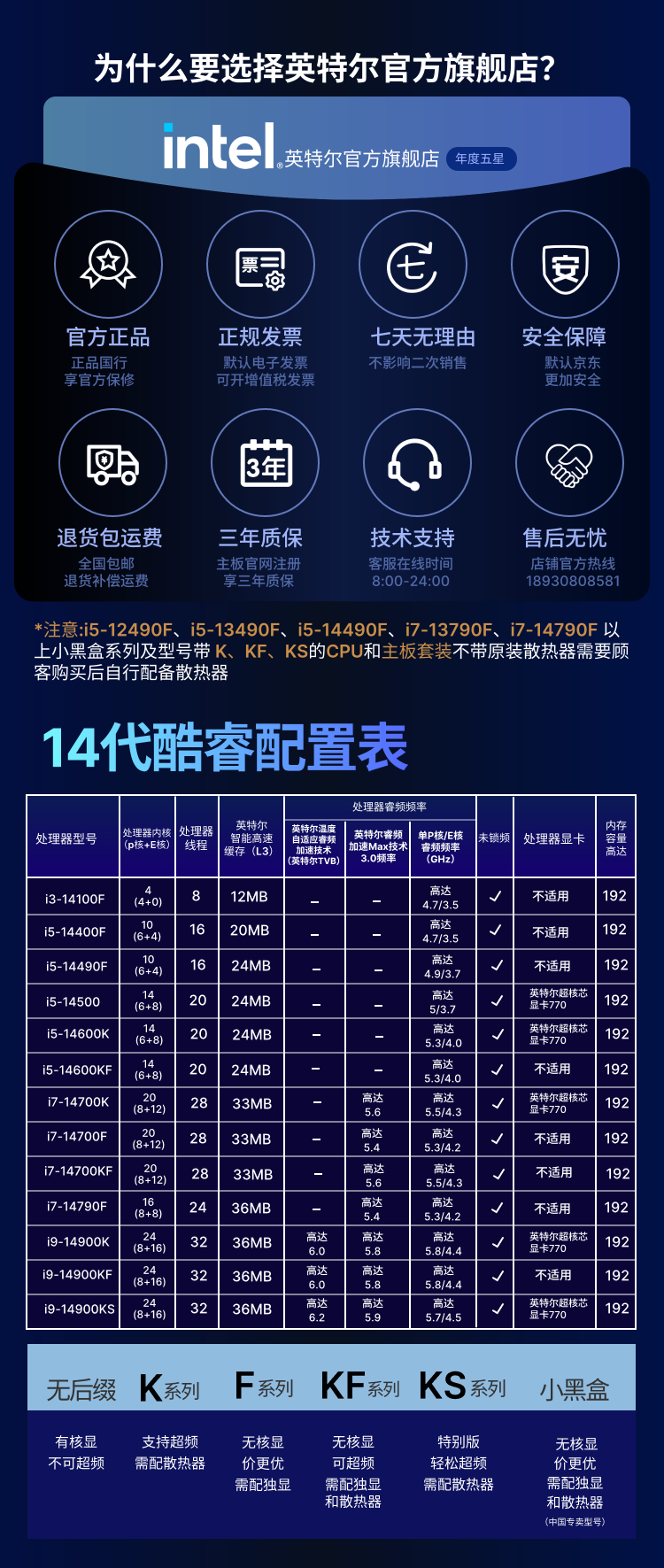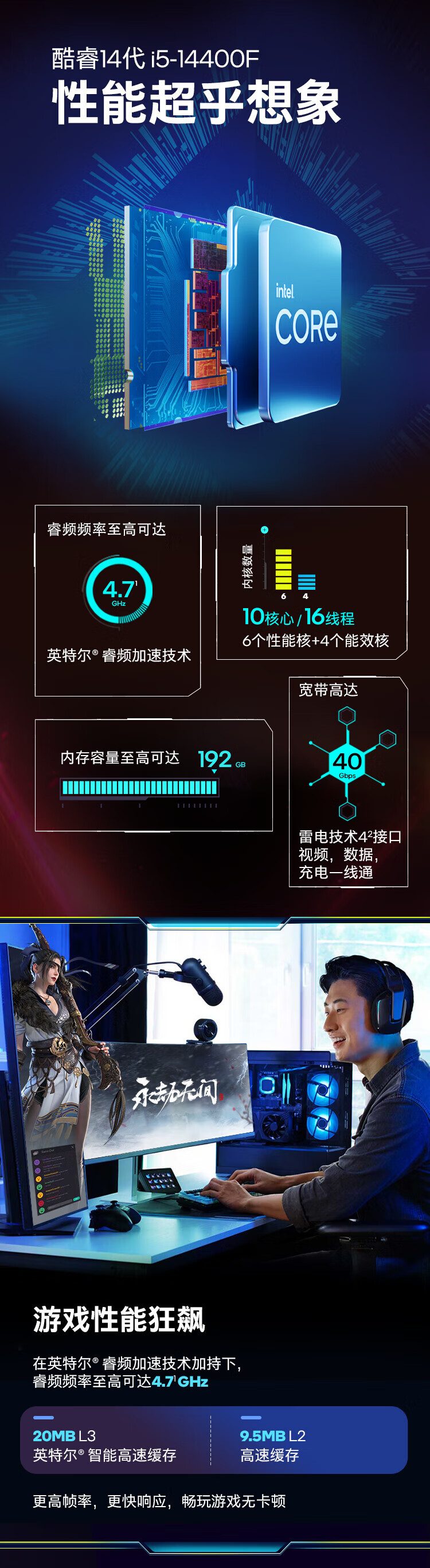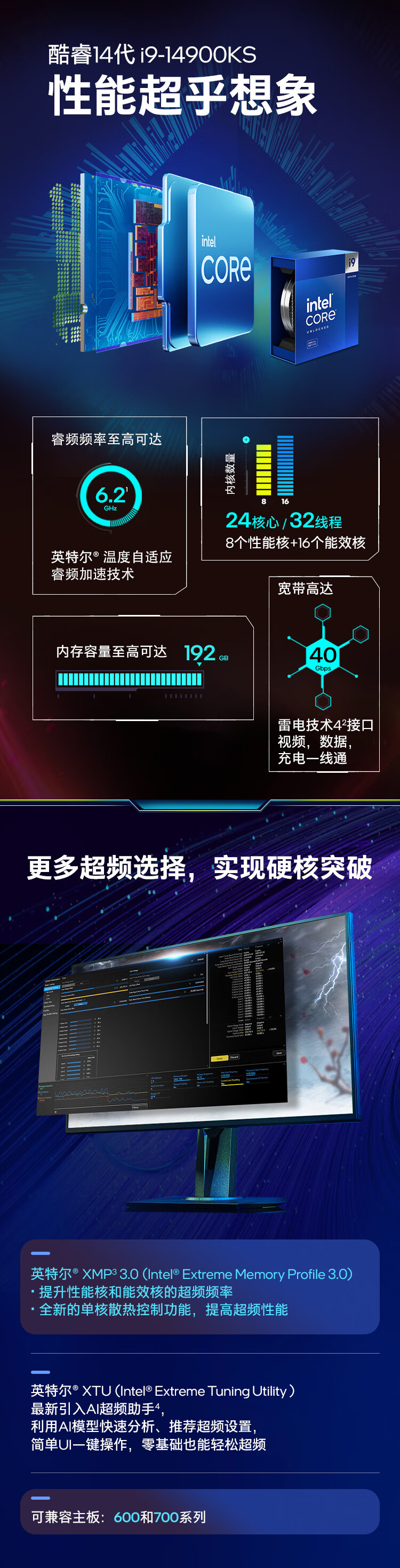 英特尔/INTEL i9-14900KF 网络连接设备 CPU 14代酷睿CPU处理器 台式机处理器 盒装CPU i9-14900KF 盒装【五年质保】