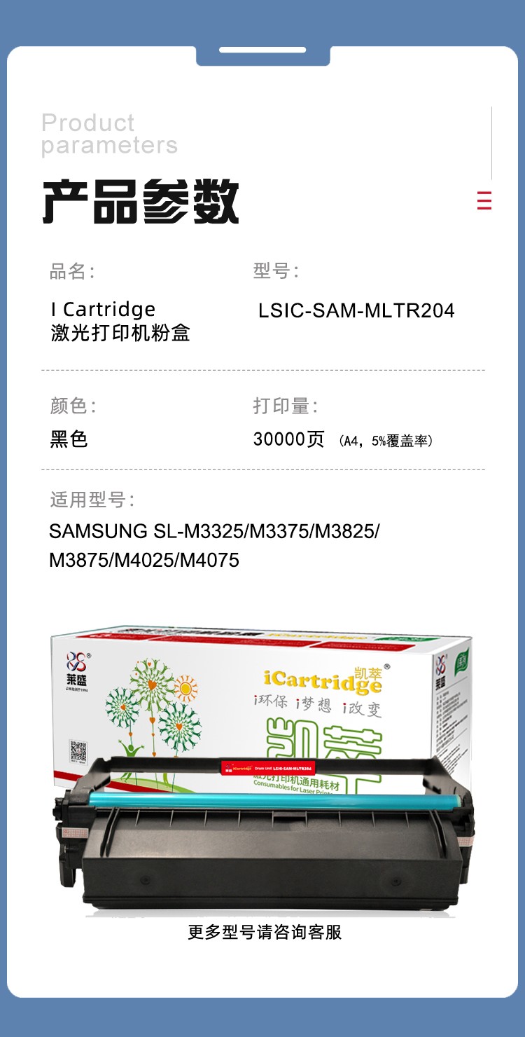 莱盛 LSIC-SAM-MLTR204 硒鼓 SAMSUNG SL-M3325/M3375/M3825M3875/M4025/M4075