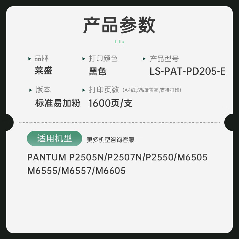 莱盛 LS-PAT-PD205-E 硒鼓 适用奔图P2505 P2550 M6505N M6555N M6605N