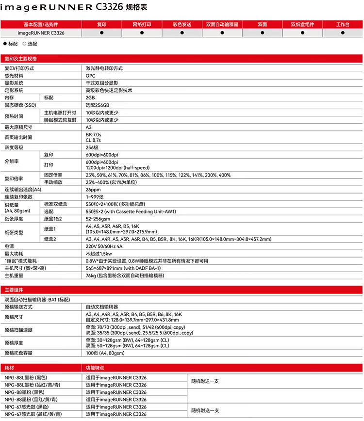佳能/CANON iRC3326 复印机 A3彩色复合机