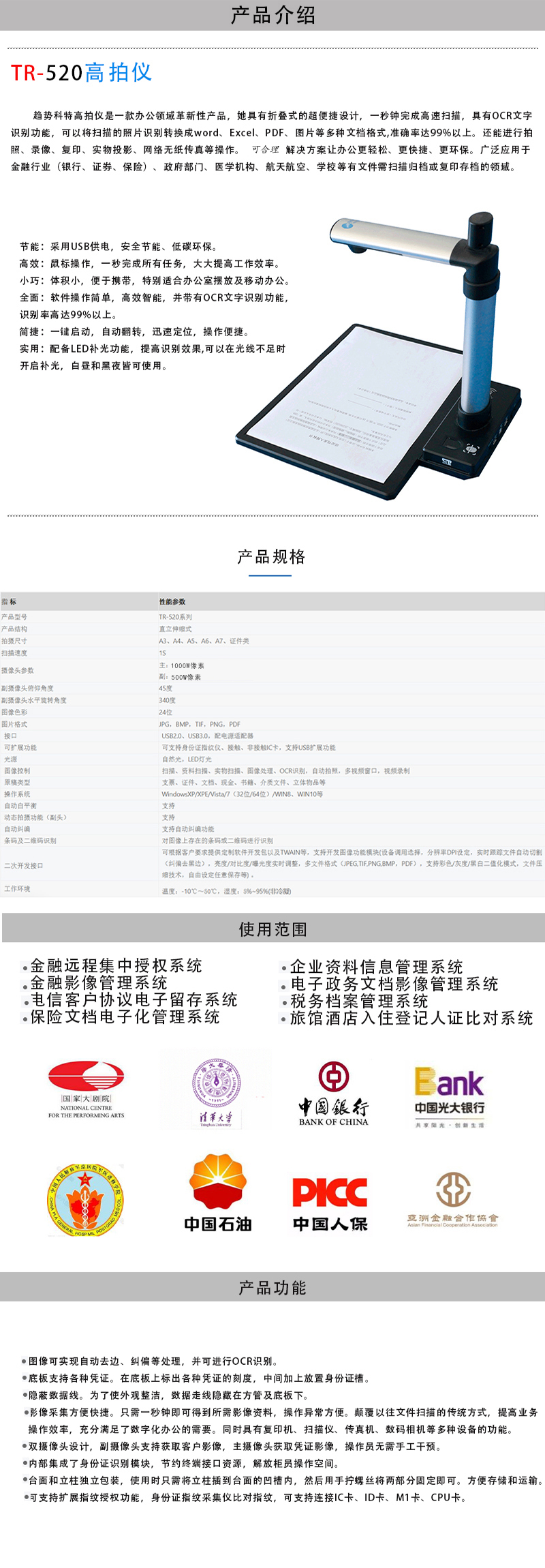 趋势科特 TR-520(CL) 高拍仪 证件文档拍摄