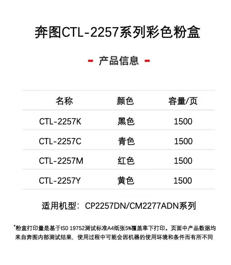 奔图/PANTUM CTL-2257 粉盒 4色套装 适用CP2257DN CM2277ADN