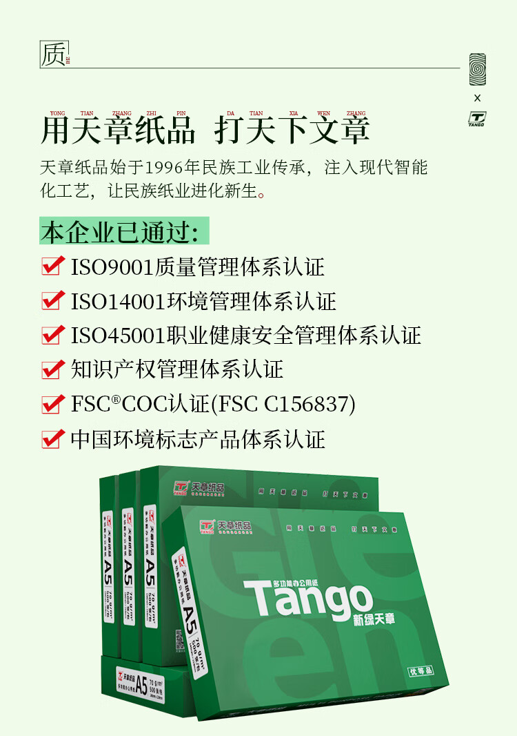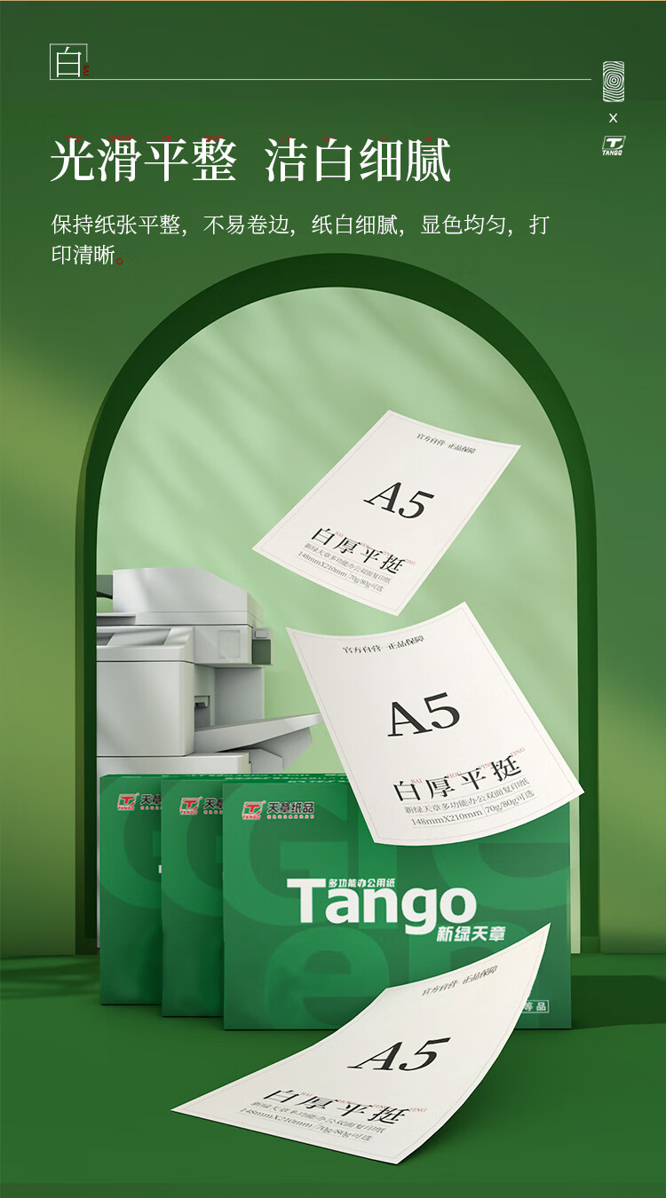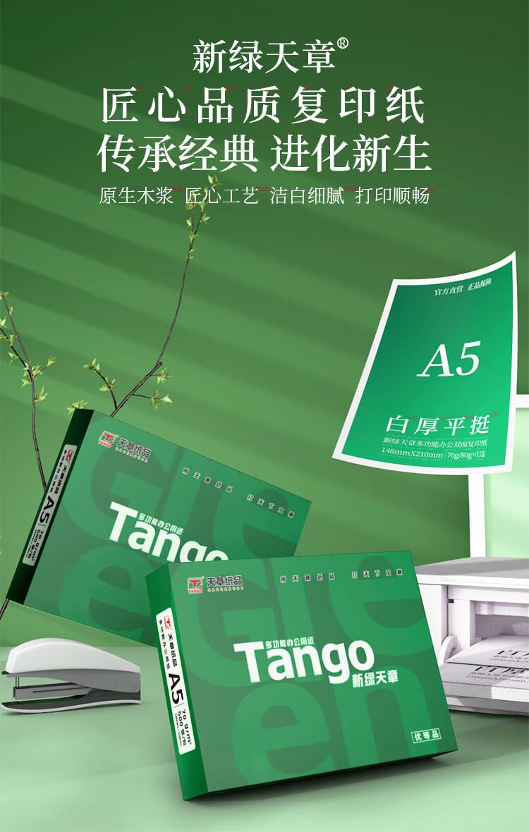 天章/TANGO A5 复印纸 新绿天章A5纸 70g 500张/包 10包/箱(148*210mm)