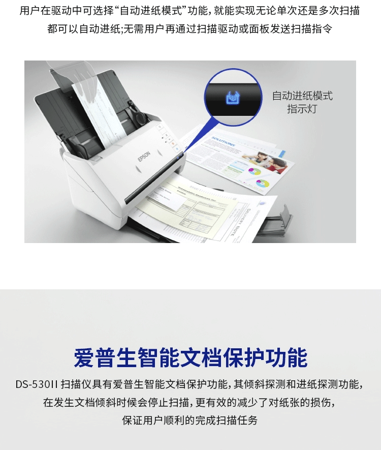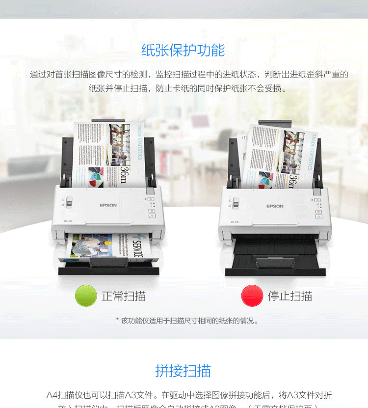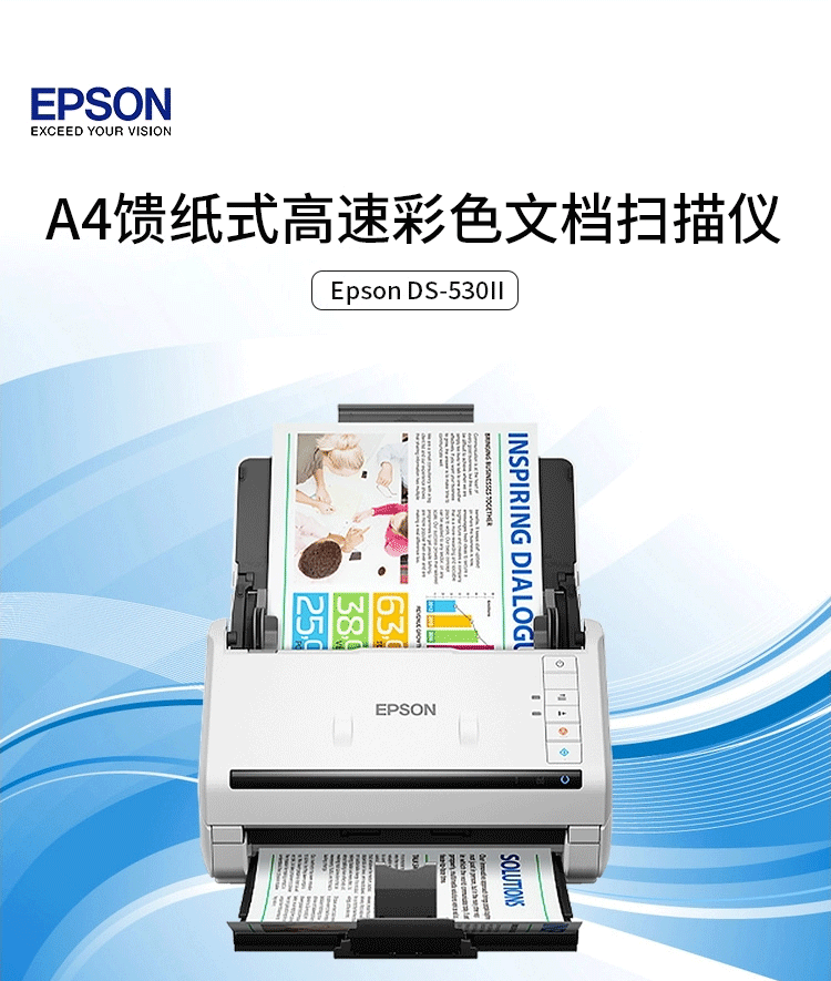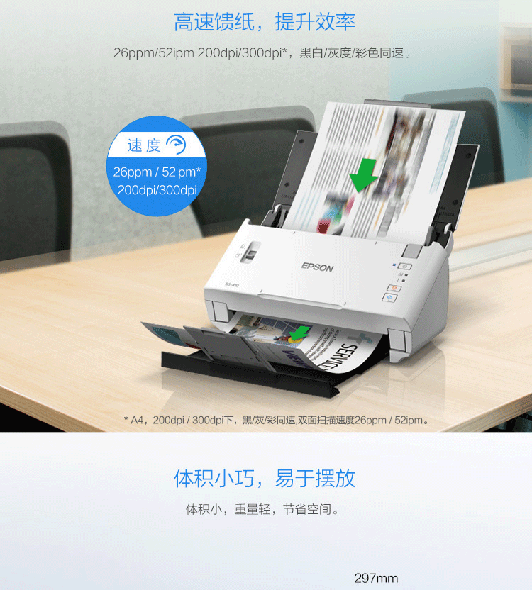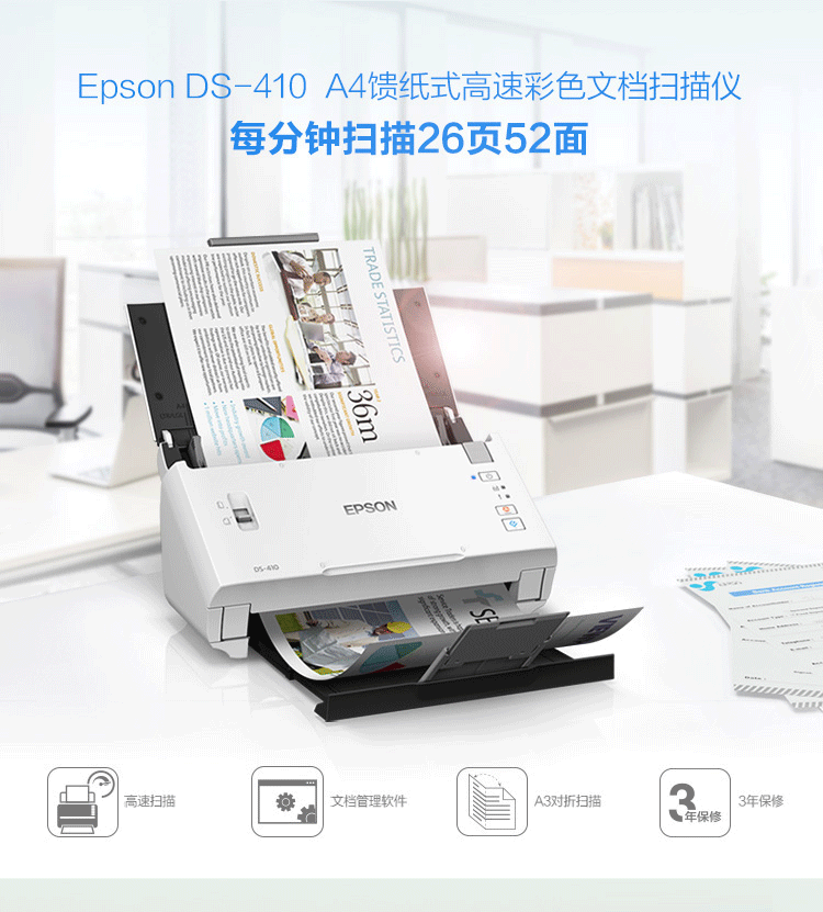 爱普生/EPSON DS-410 扫描仪 A4彩色文档馈纸式自动连续双面高速扫描仪批量扫描文档合同扫描