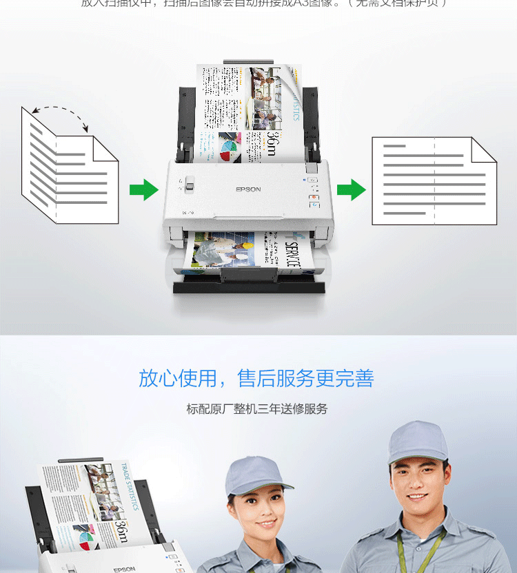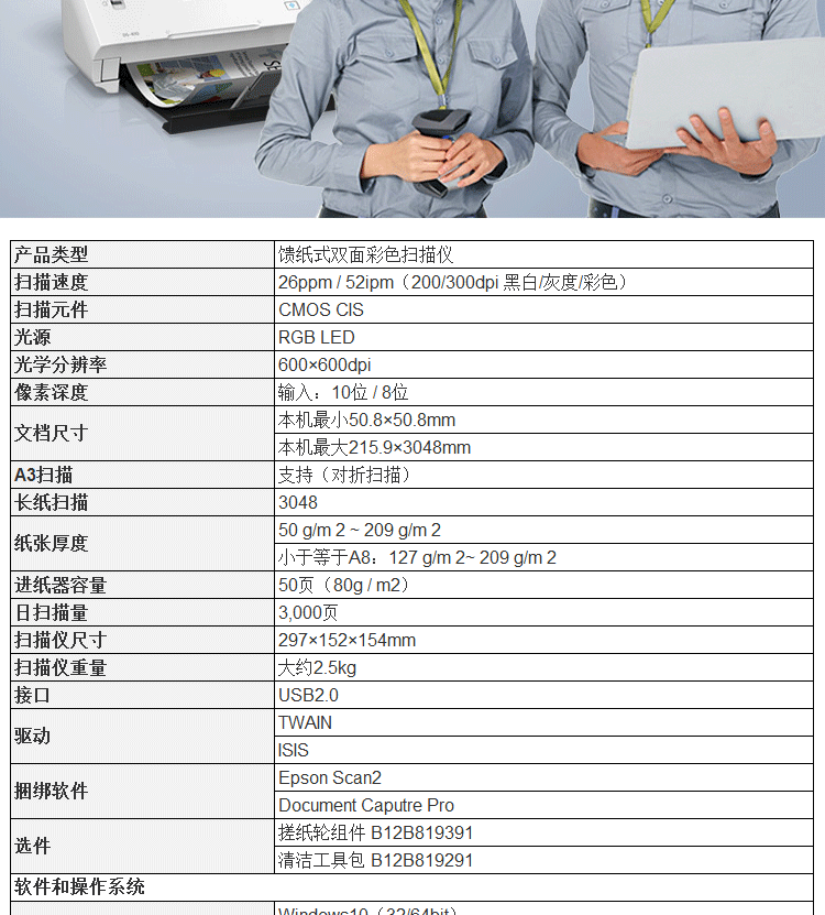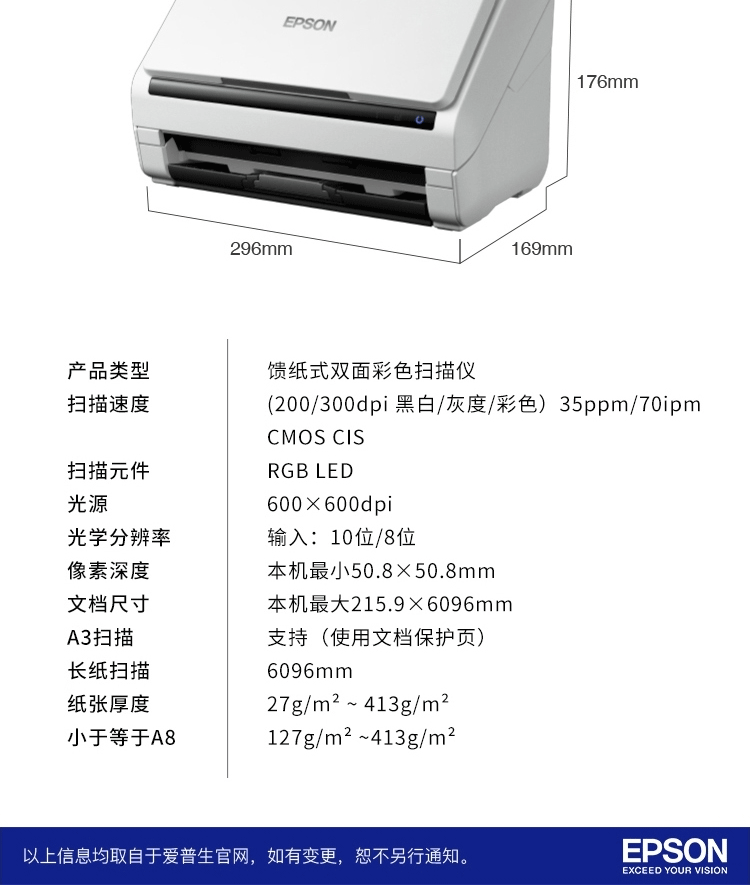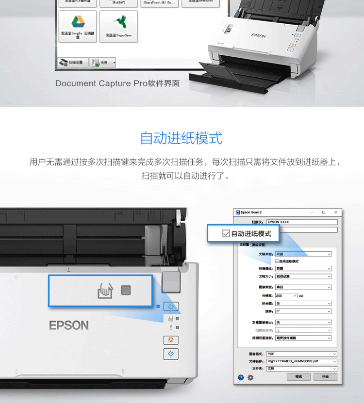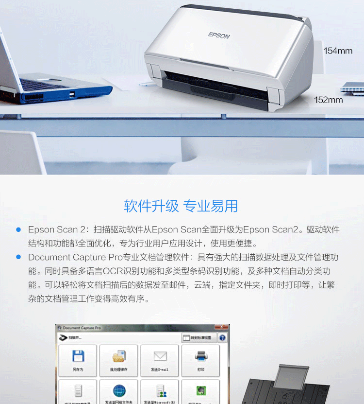 爱普生/EPSON DS-410 扫描仪 A4彩色文档馈纸式自动连续双面高速扫描仪批量扫描文档合同扫描