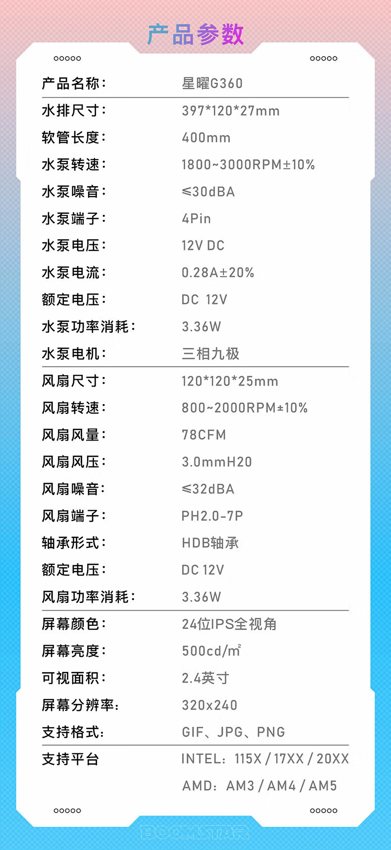 影驰 G360 风扇 电脑机箱风扇 星曜G360水冷散热器无风扇版本白